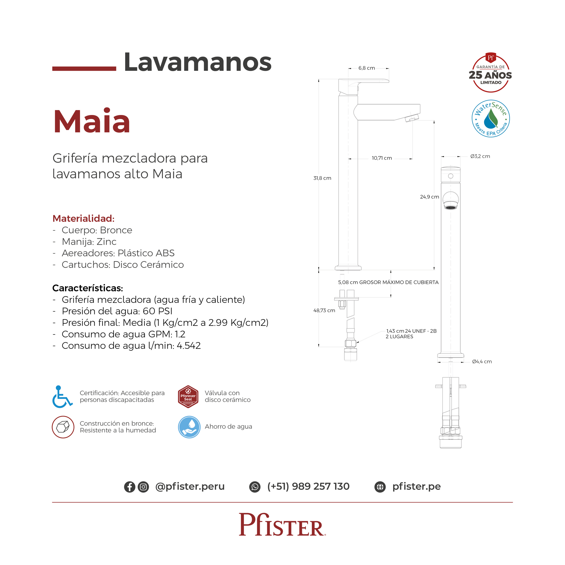 - Cartuchos: Disco Cerámico (Asegura el flujo constante y sin goteo)