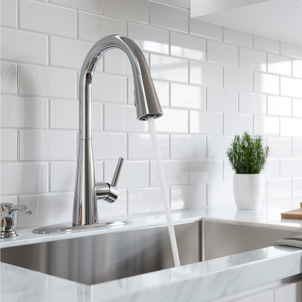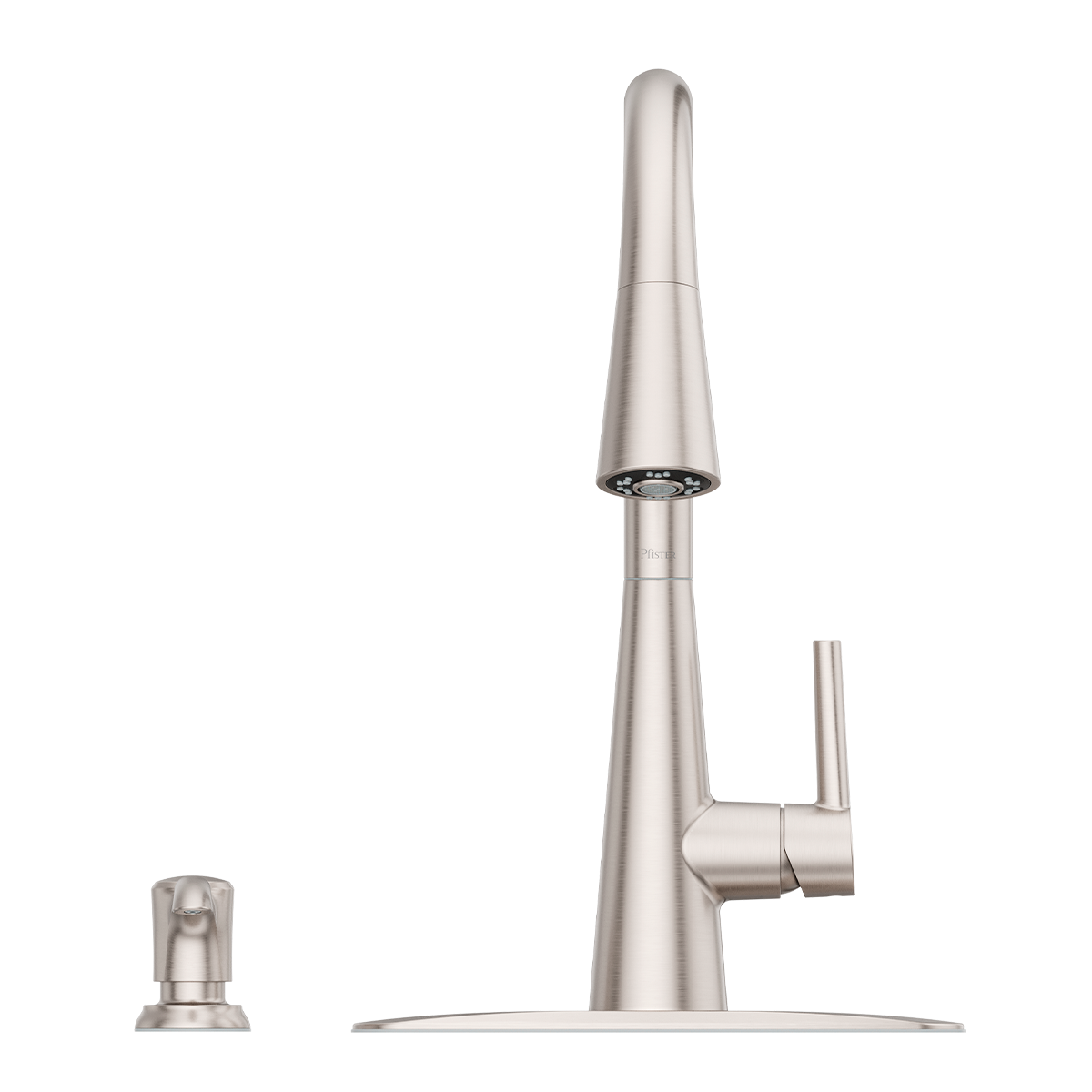 - Cabezal: Pull-down (Manguera flexible que se puede jalar hacia abajo. Esto te permite dirigir el agua con más facilidad para lavar o limpiar. Al soltarlo, el cabezal vuelve a su lugar automáticamente