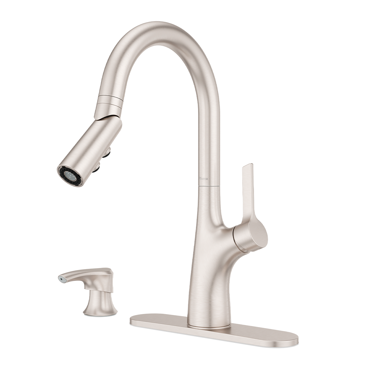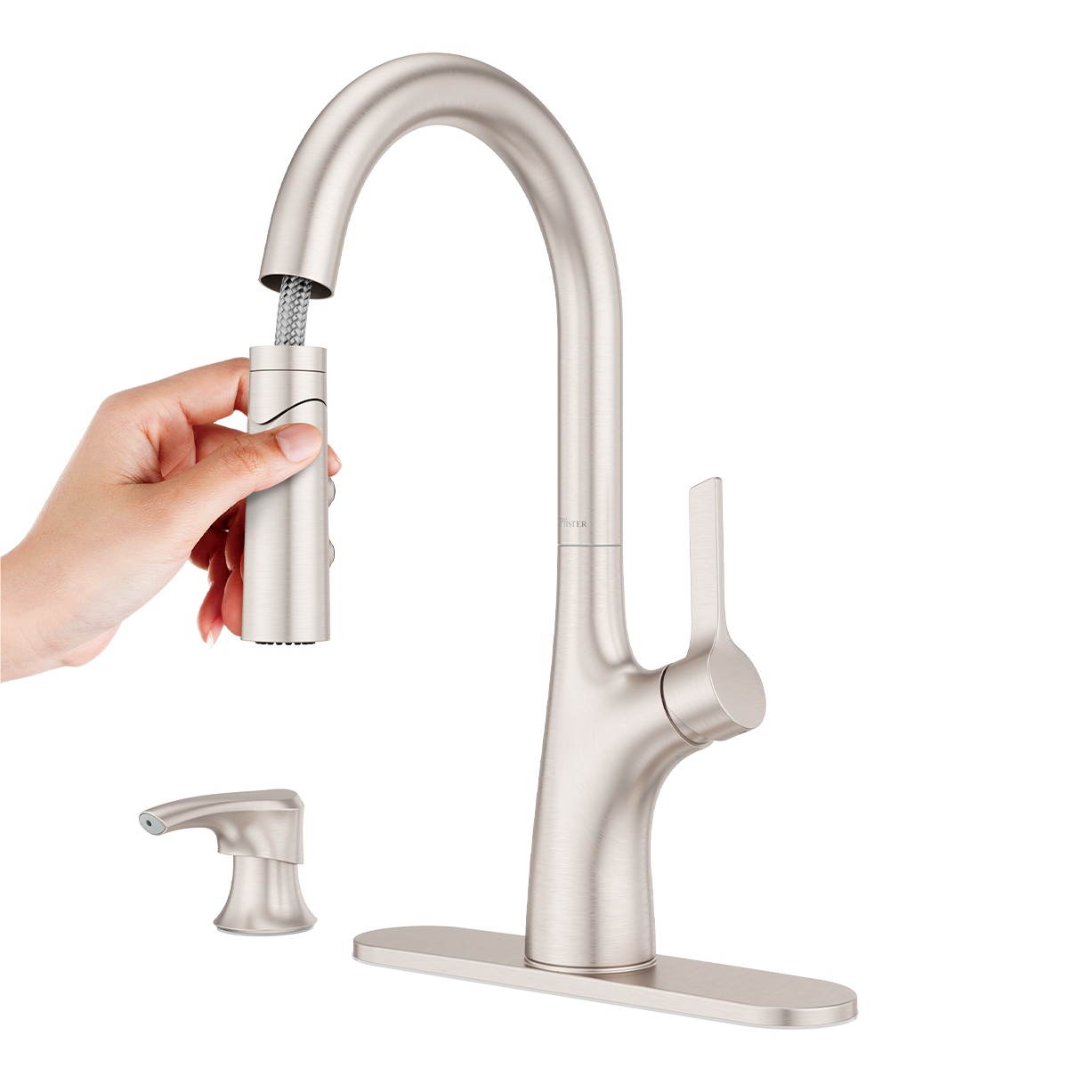 - Cabezal: Pull-down (Manguera flexible que se puede jalar hacia abajo. Esto te permite dirigir el agua con más facilidad para lavar o limpiar. Al soltarlo, el cabezal vuelve a su lugar automáticamente