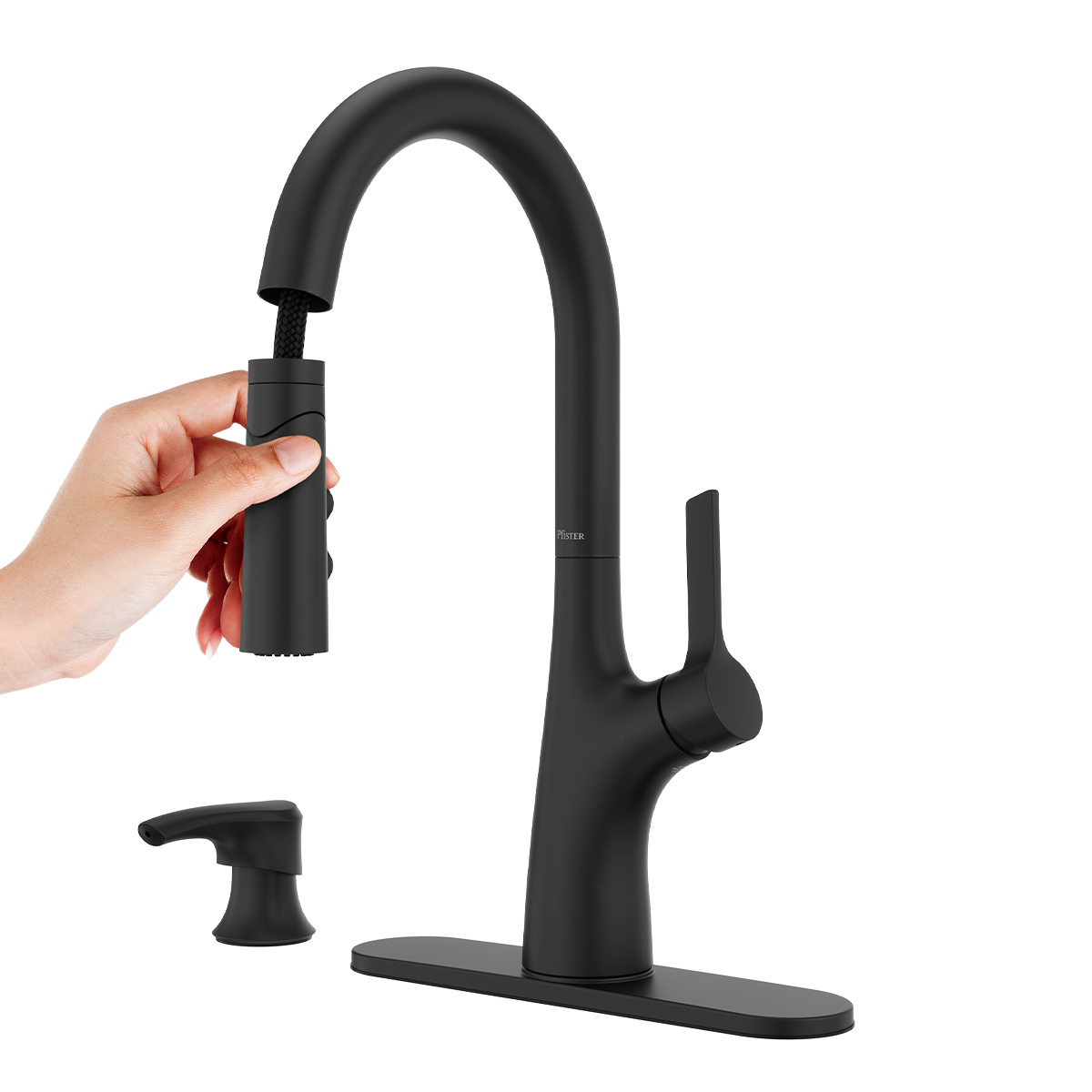 - Cabezal: Pull-down (Manguera flexible que se puede jalar hacia abajo. Esto te permite dirigir el agua con más facilidad para lavar o limpiar. Al soltarlo, el cabezal vuelve a su lugar automáticamente