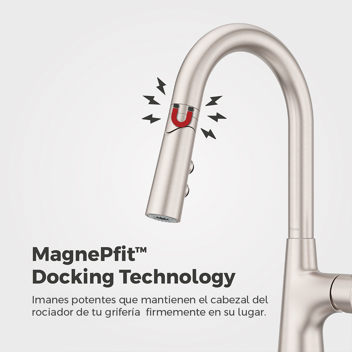 - Tecnología MagnePfit: Utiliza un potente acoplamiento magnético para mantener el cabezal rociador firmemente asegurado