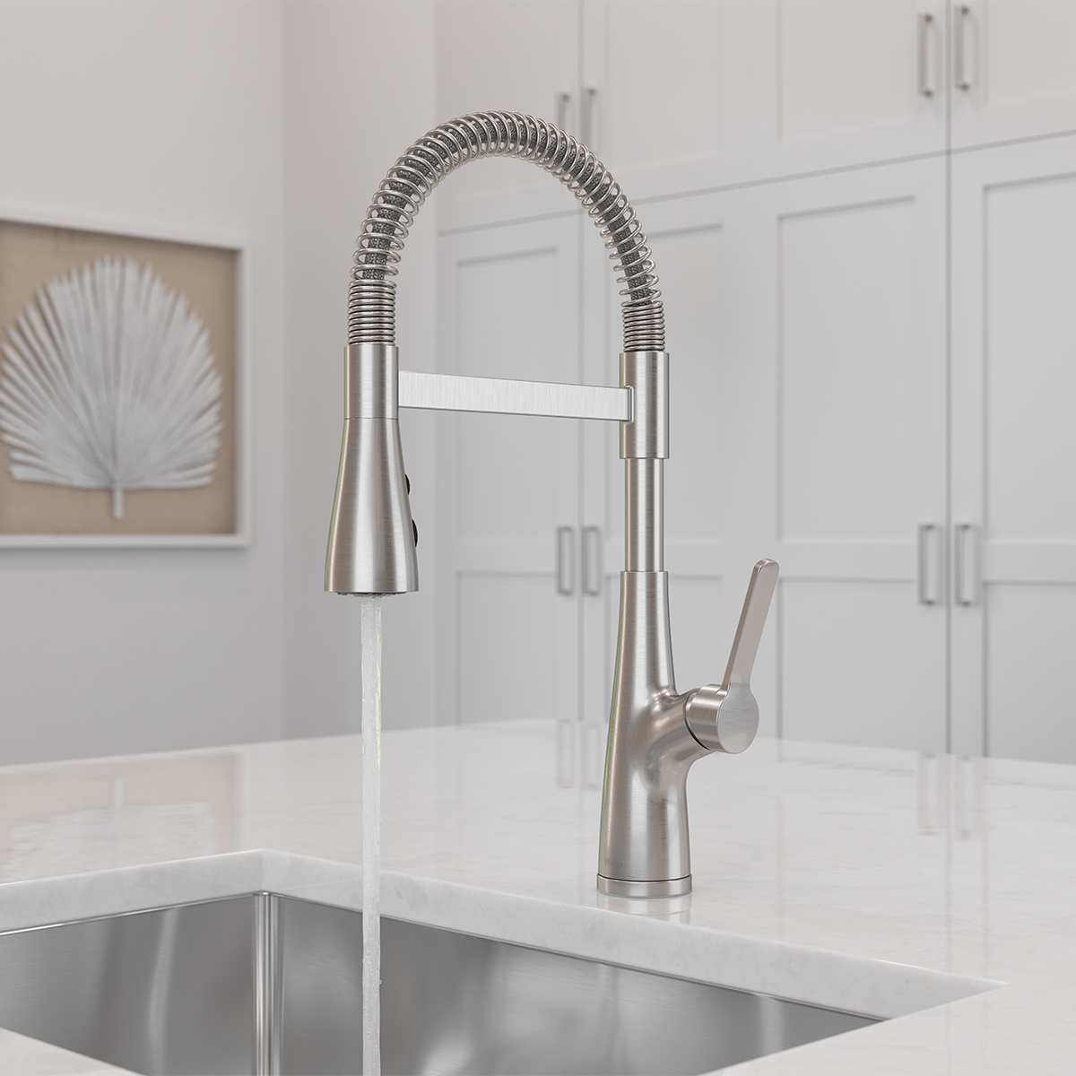 - Cabezal: Pull-down (Manguera flexible que se puede jalar hacia abajo. Esto te permite dirigir el agua con más facilidad para lavar o limpiar. Al soltarlo, el cabezal vuelve a su lugar automáticamente