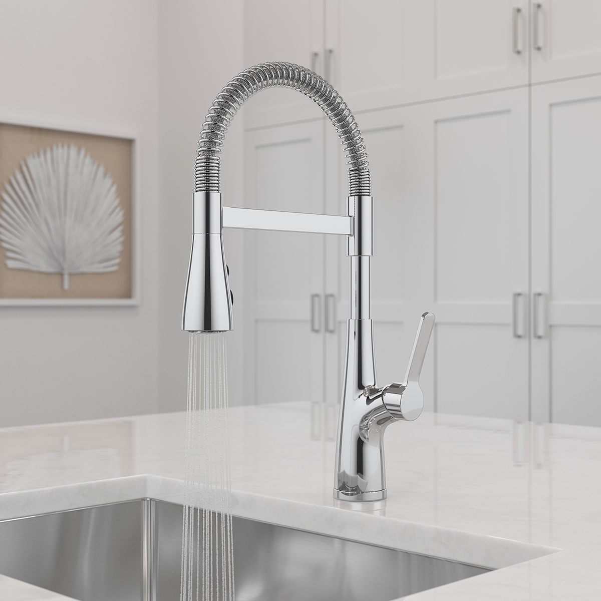 - Cabezal: Pull-down (Manguera flexible que se puede jalar hacia abajo. Esto te permite dirigir el agua con más facilidad para lavar o limpiar. Al soltarlo, el cabezal vuelve a su lugar automáticamente