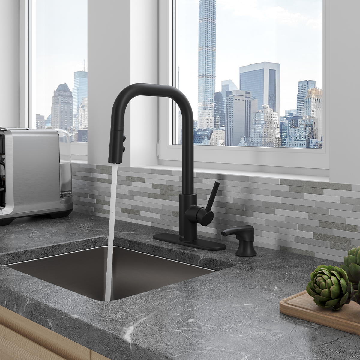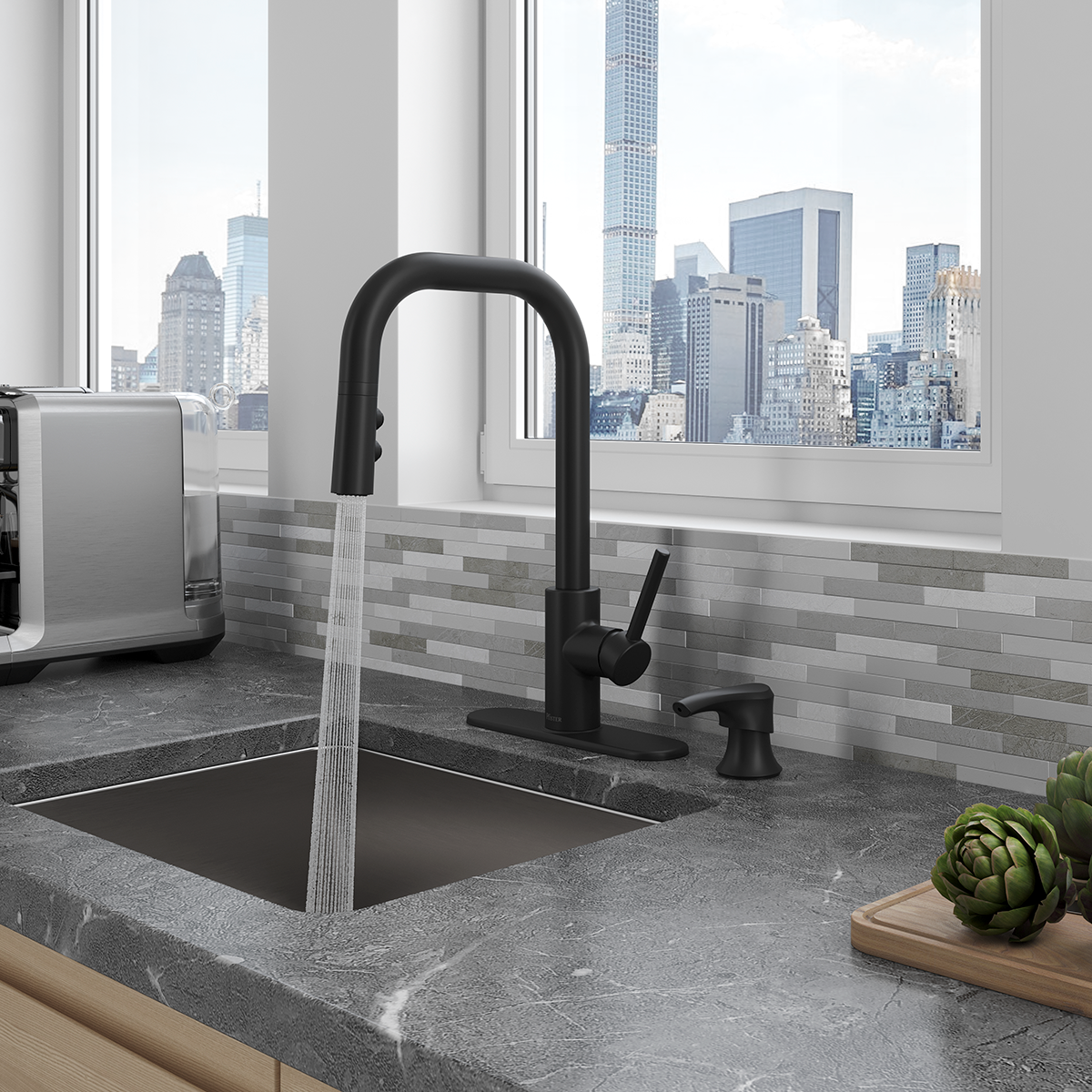 - Cabezal: Pull-down (Manguera flexible que se puede jalar hacia abajo. Esto te permite dirigir el agua con más facilidad para lavar o limpiar. Al soltarlo, el cabezal vuelve a su lugar automáticamente